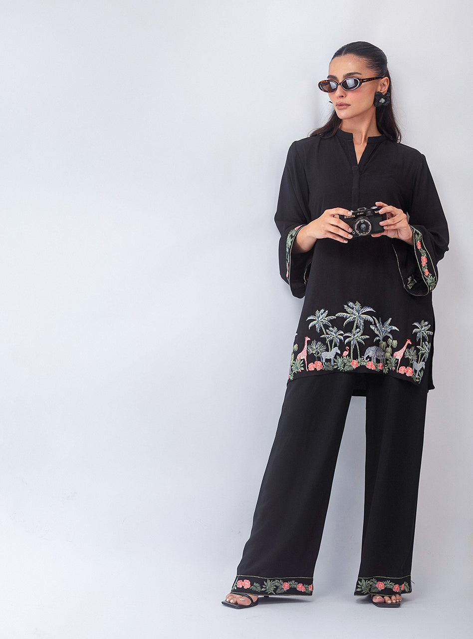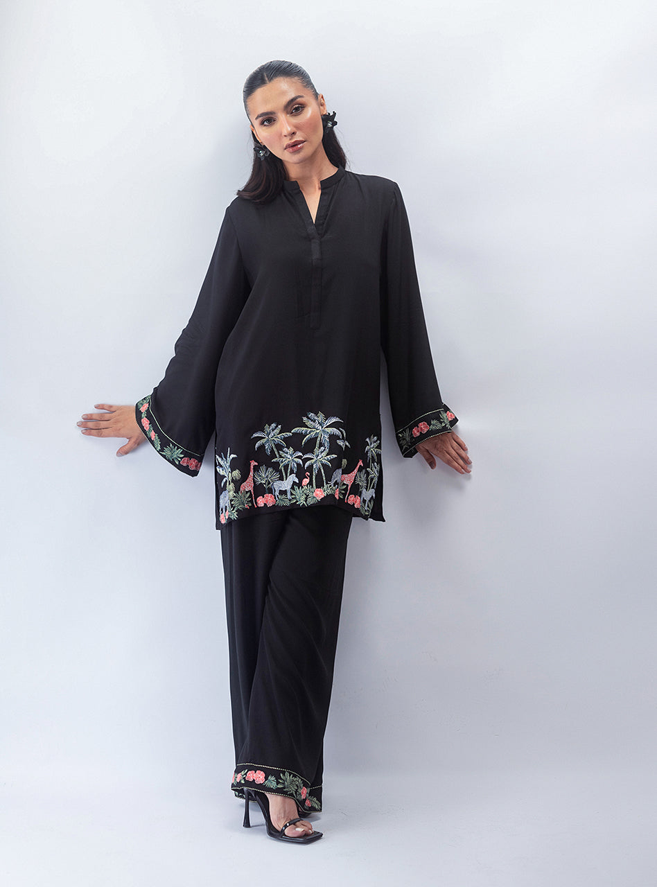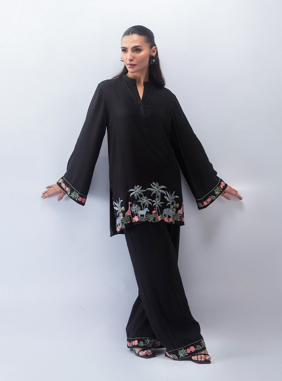 Ready to own the night (or day)? Our It Girl set in sleek black is your ultimate power move. This short shirt and matching shalwar combo is giving major sophisticated vibes, but still super comfy for wherever your main character energy takes you. The intricate embroidery along the hem? That’s your subtle flex, adding a touch of unexpected cool to this timeless classic.