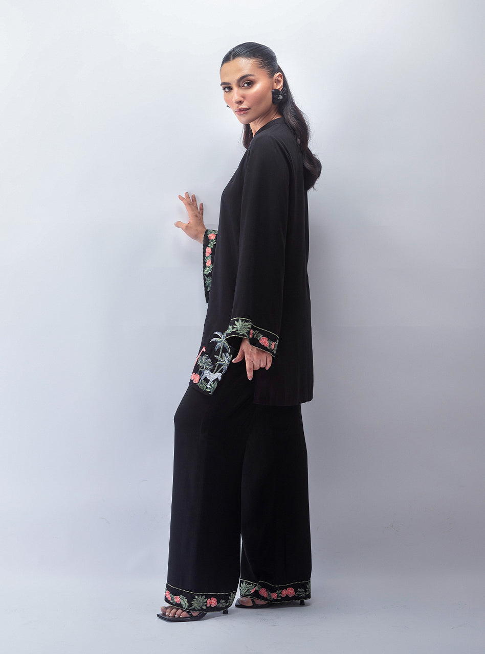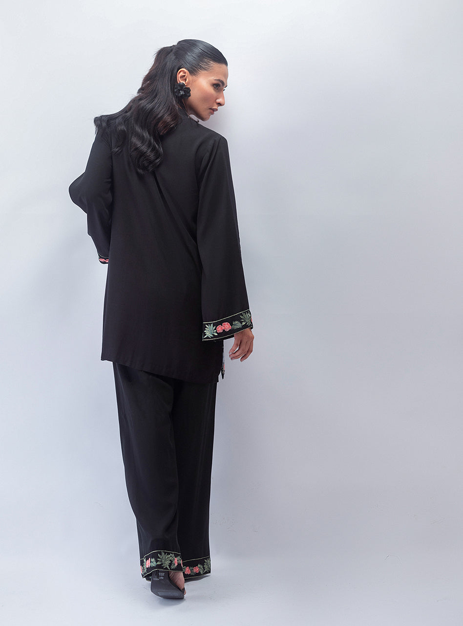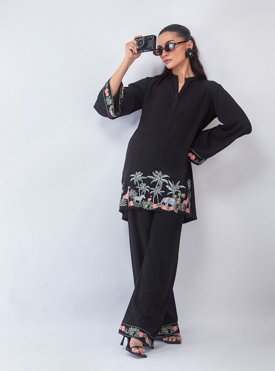 Ready to own the night (or day)? Our It Girl set in sleek black is your ultimate power move. This short shirt and matching shalwar combo is giving major sophisticated vibes, but still super comfy for wherever your main character energy takes you. The intricate embroidery along the hem? That’s your subtle flex, adding a touch of unexpected cool to this timeless classic.