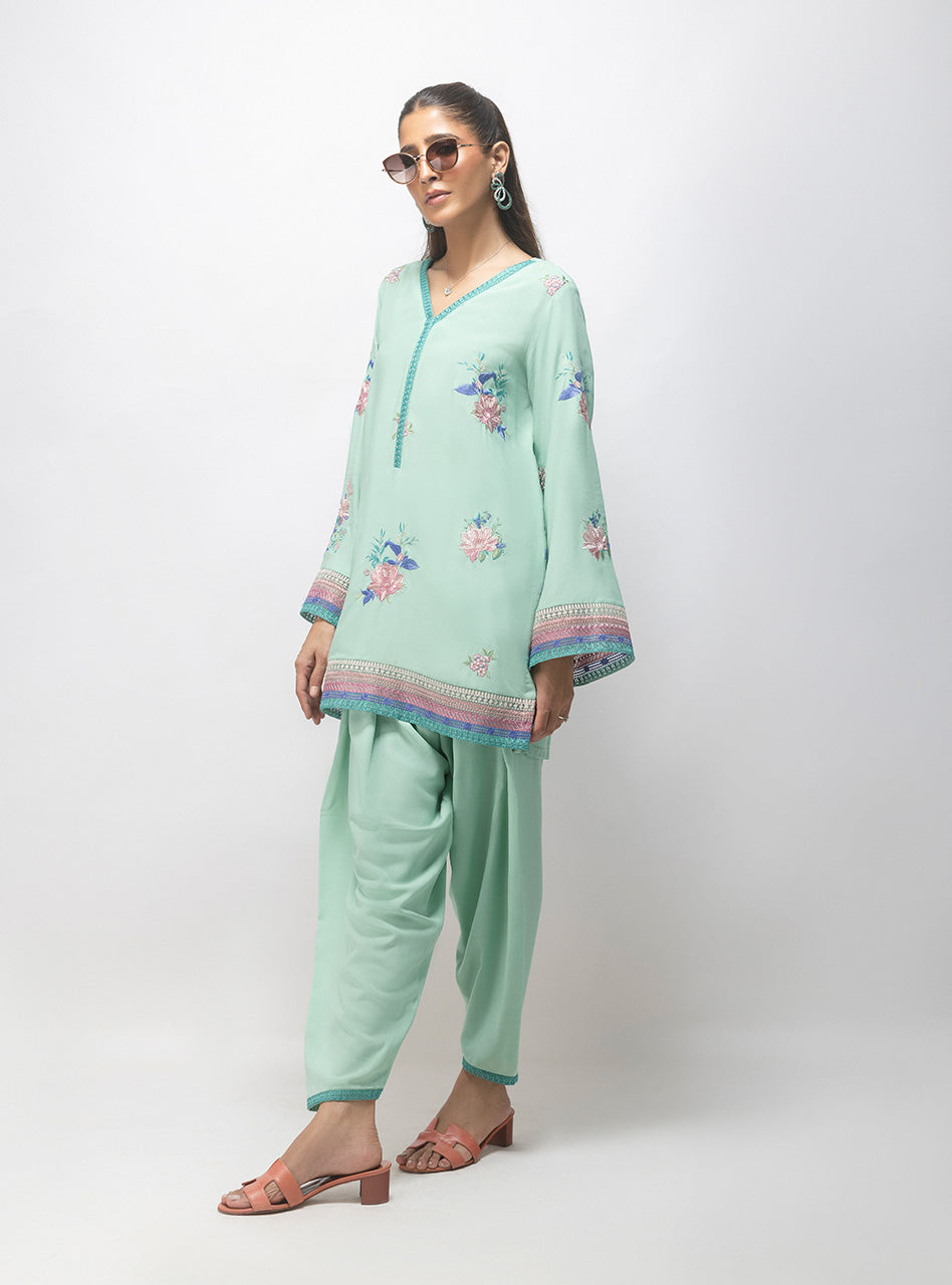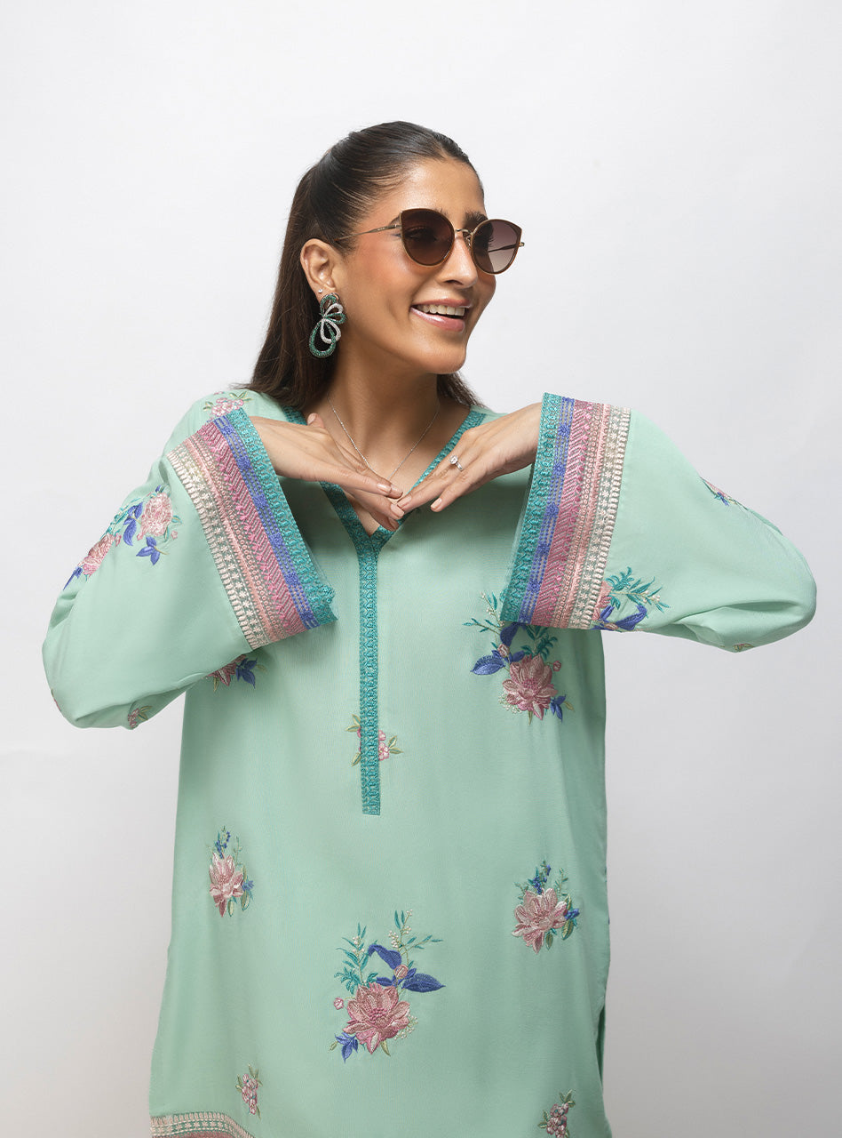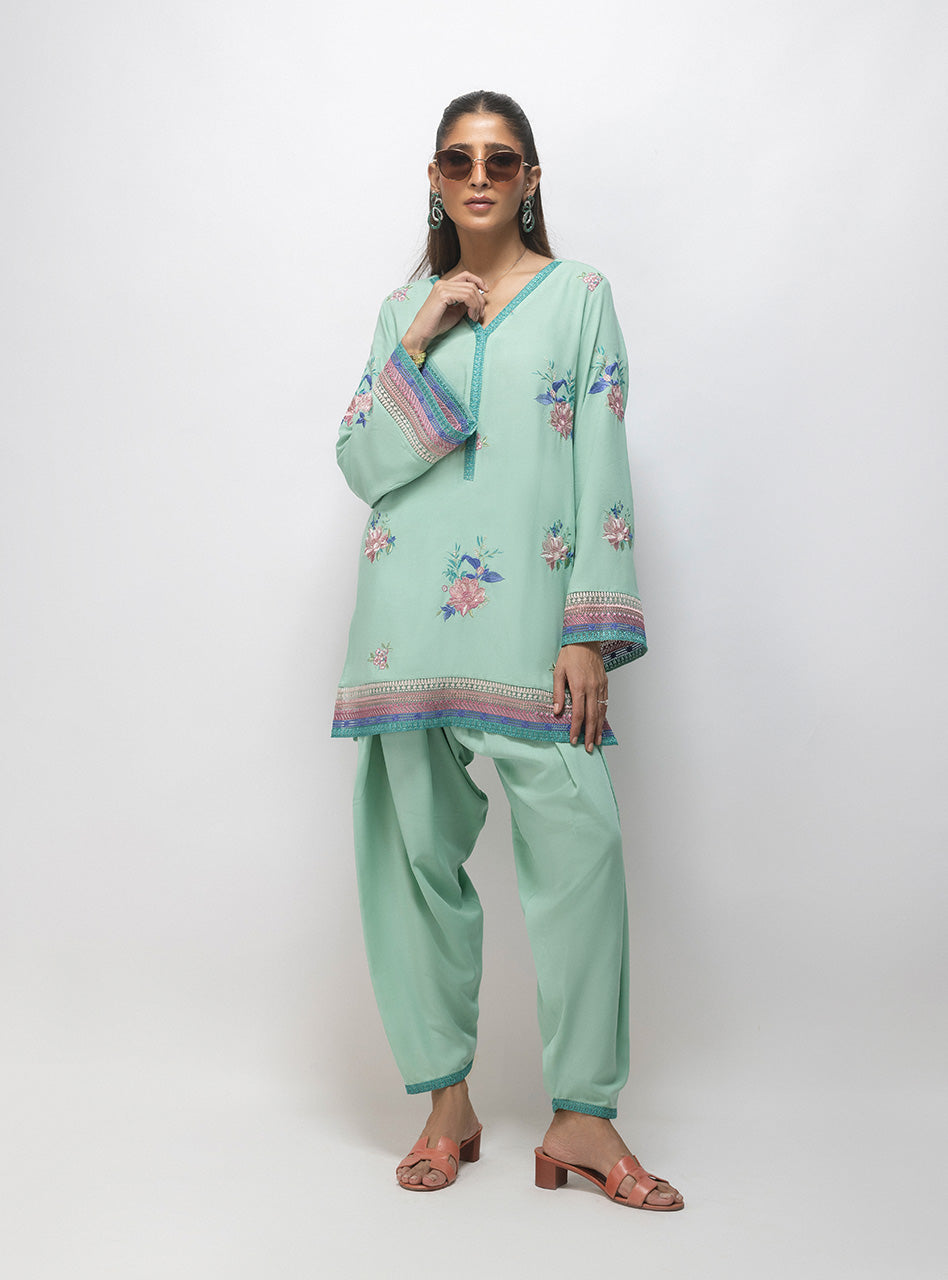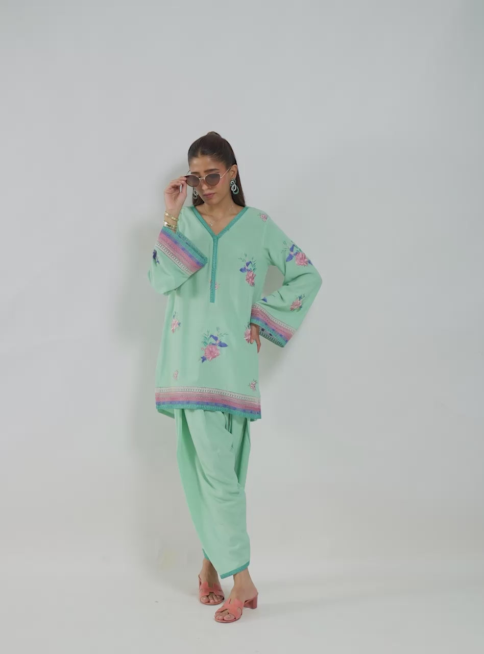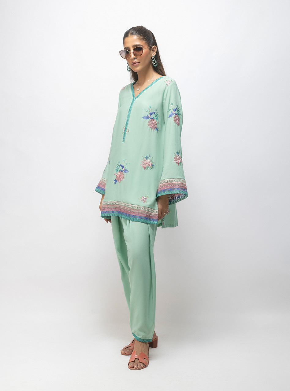 Get ready to soft launch your new aesthetic. This mint green set is serving major fresh energy, complete with delicate floral embroidery that's giving main character but in a chill way. It's comfy, it's cute, and it's perfect for when you want to look effortlessly put-together without even trying. Obsessed.