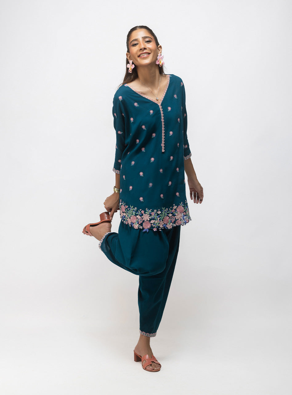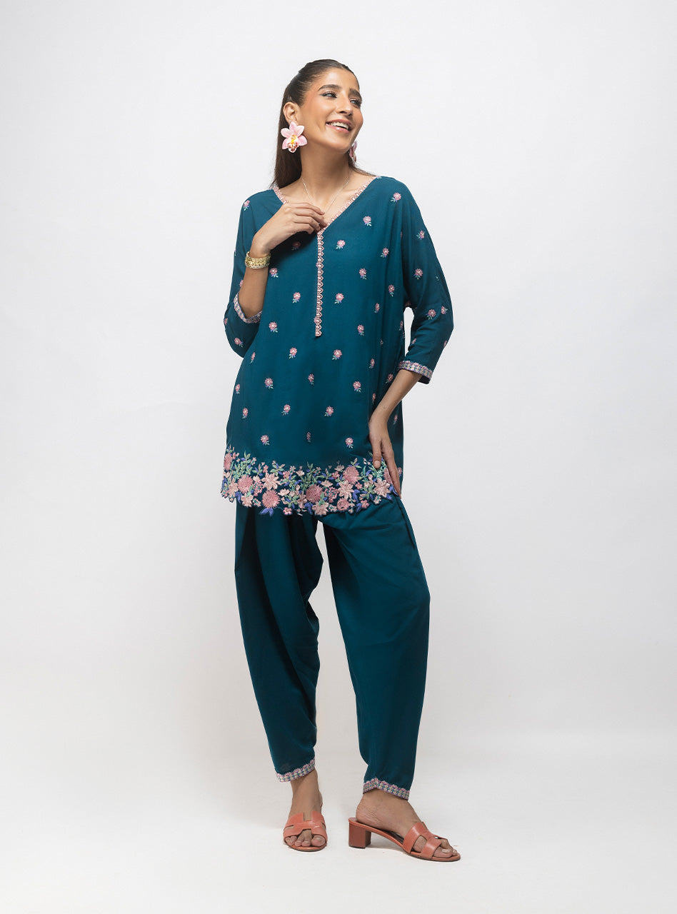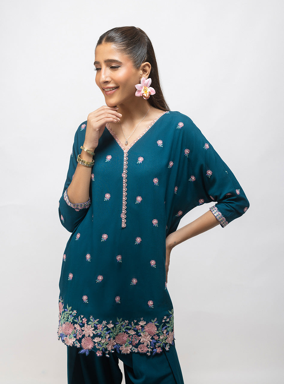When the weekend calls, you answer in the Weekend Wanderer outfit. This rich teal is a whole mood, and the sweet pink floral embroidery, Chef's kiss. It's giving effortless chic for all your spontaneous plans, from coffee runs to actual wanderlust. Get ready to collect compliments. Period.